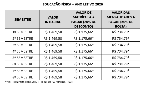 ANUIDADES PARA O ANO LETIVO DE 2026