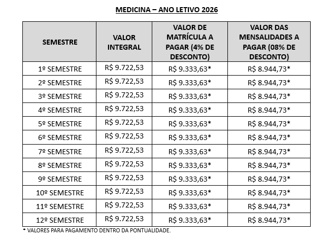 ANUIDADES PARA O ANO LETIVO DE 2026